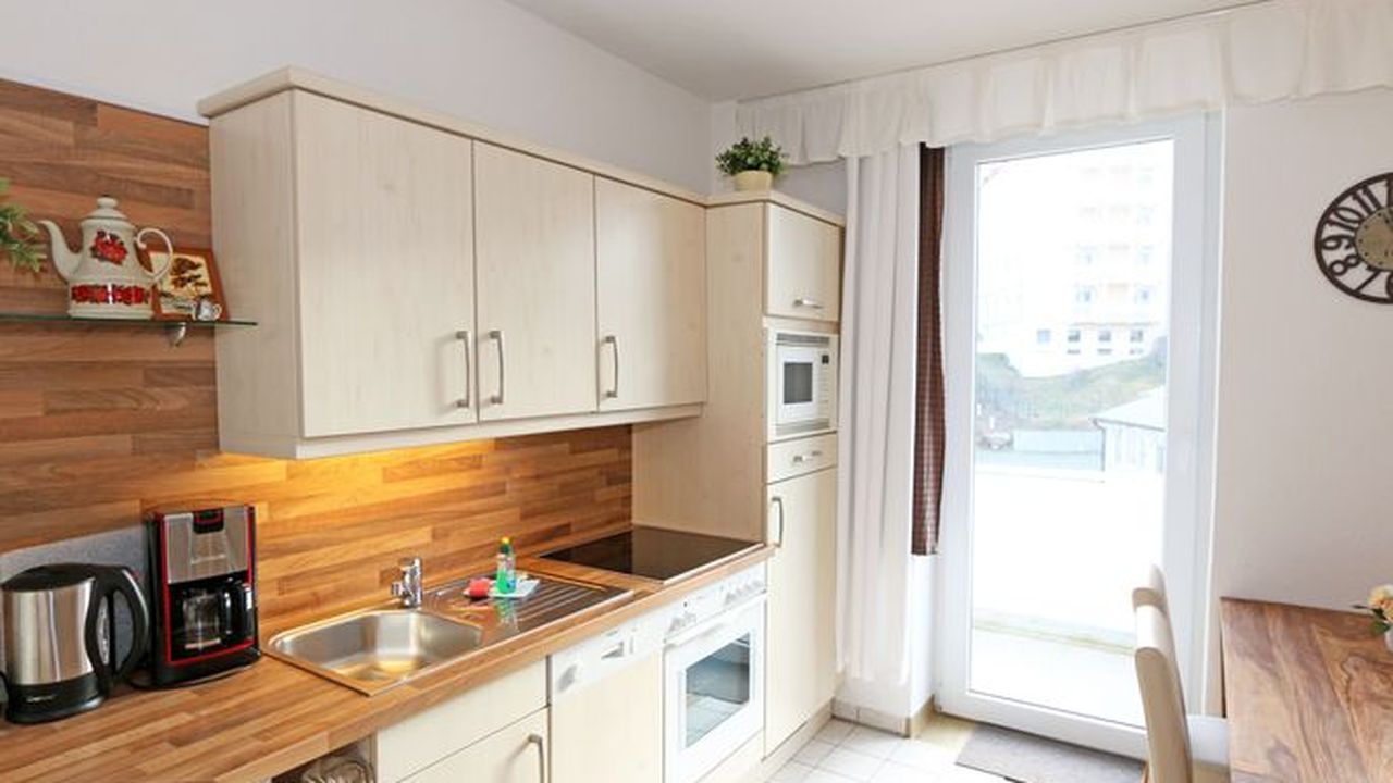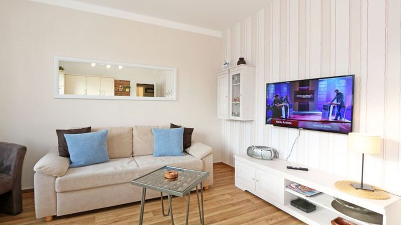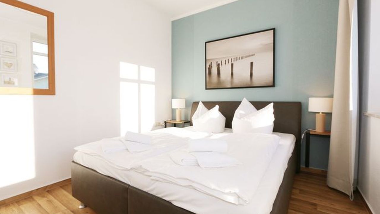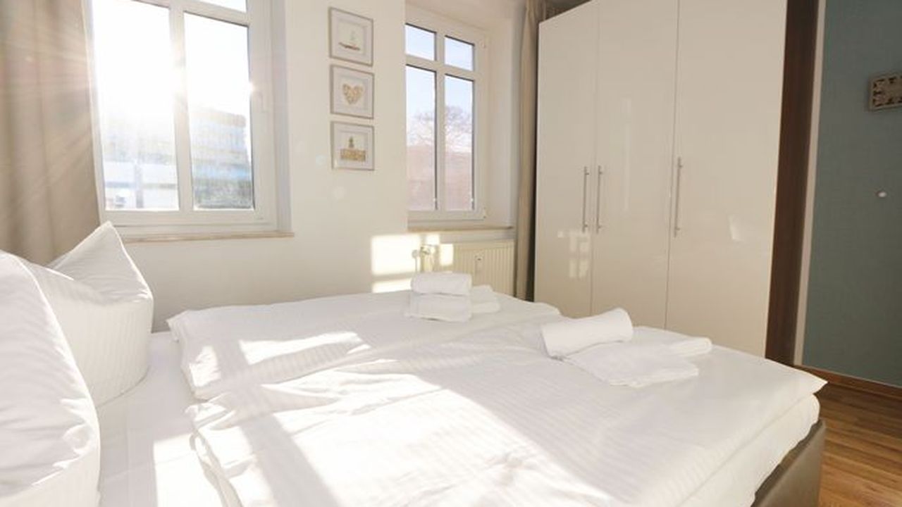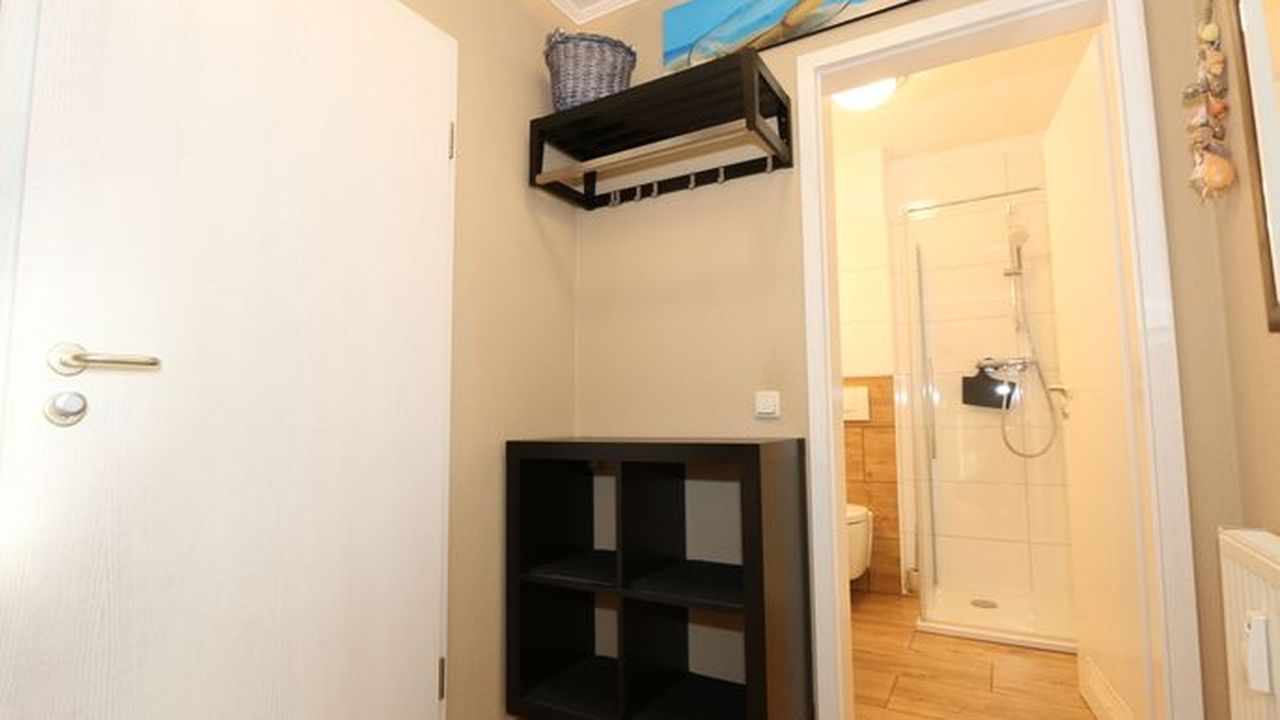 Die Ferienwohnung 09 des Hauses Strandmuschel ist eine komfortable Nichtraucherwohnung, welche sich in der 2. Etage befindet. Die 2-Zimmer Wohnung umfasst etwa 40m² und bietet somit ausreichend Platz für bis zu 4 Personen. Sie setzt sich zusammen aus einem Wohnbereich mit Balkon, einem Schlafzimmer und schließlich dem Badezimmer. Der Wohnbereich ist liebevoll und detailreich eingerichtet. Im dem lichtdurchfluteten Raum finden sie, neben einem Sessel sowie einem Couchtisch, ein bequemes Schlafsofa (1,40m x 2,00m), welches als Schlafmöglichkeit für 2 Personen geeignet ist. Ein Flachbild-TV sowie ein DVD-Player ermöglichen es ihnen, nach einem eindrucksvollen Tag einen gemütlichen Filmeabend mit den Liebsten zu verbringen. Auch ein Radio mit CD-Player und verschiedene Lektüren für die Bücherwürmer unter ihnen sind vorzufinden. Auf einen Internetzugang (WLAN) brauchen Sie nicht verzichten. Dieser ist für Sie inklusive. Die Küchenzeile im gleichen Raum ist mit einem Ceranfeld ausgestattet. Sie enthält, neben einem Backofen und einem Kühlschrank mit Eisfach, einen Geschirrspüler, eine Mikrowelle, einen Wasserkocher, einen Toaster, eine Kaffeemaschine und diverse Kochutensilien. Komplettiert wird der Wohnbereich durch einen Esstisch mit vier Stühlen sowie dem Zugang zum Balkon (Süd/Ost). Dieser umfasst knapp 7 m². Auch hier finden sie einen Tisch mit vier Stühlen sowie einen Sonnenschirm. Der Balkon (Süd/Ost) ist seitlich zum Meer ausgerichtet und tragen die Bäume zum Ende des Jahres keine Blätter mehr, so haben sie zumindest einen wunderbaren Blick auf das Meer. Das Schlafzimmer ist mit einem Doppelbett (1,60m x 2,00m), verstellbare Lattenroste und einem geräumigen Kleiderschrank ausgestattet. Auch ein kleiner Spiegel mit einer Ablage ist vorzufinden. Wie auch der Wohnbereich, ist das Schlafzimmer angenehm hell. Bei Bedarf können sie jedoch einfach die Vorhänge zuziehen und dunkeln den Raum somit komplett ab. Sollten sie feststellen, dass ihre Kleidung im Koffer zerknittert ist, so finden sie im Schlafzimmer sowohl ein kleines Bügelbrett als auch ein Bügeleisen vor. Abgerundet wird der Raum durch zwei Nachttischablagen mit jeweils einer Lampe sowie dekorativen Akzenten im ganzen Raum. Das Badezimmer setzt sich zusammen aus einer Dusche, einem Waschplatz, einem WC, einem beleuchteten Spiegel sowie einer Ablage. Auch ein Fön steht zur Verfügung. Natürlich ist auch an die kleinen Gäste gedacht, so dass Sie sich an verschiedenen Spielzeugen, Gesellschaftsspielen und Kinderbüchern erfreuen werden. Zusätzlich finden sie im Wohnbereich einen Kinderfahrradhelm. Ein kostenloser und mit einer Schranke gesicherter Stellplatz für Ihren PKW befindet sich direkt am Haus. Haustiere sind nicht erlaubt. Die Erstausstattung eines Wäschepaketes (komplette Bettwäsche, 1 Duschhandtuch, 2 kleine Handtücher, 2 Geschirrhandtücher) können Sie bis 14 Tage vor Anreise gegen einen Aufpreis dazu buchen oder durch eigene ergänzen.Sonstiges