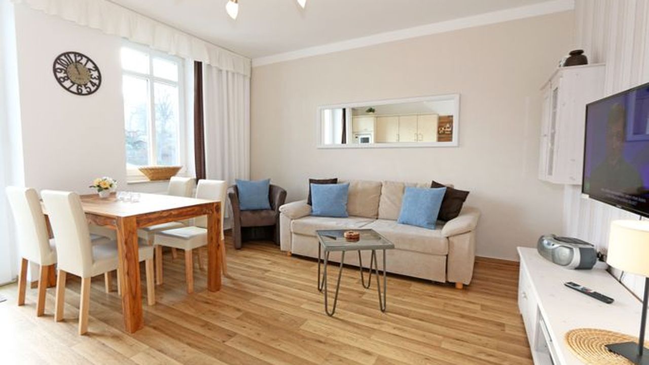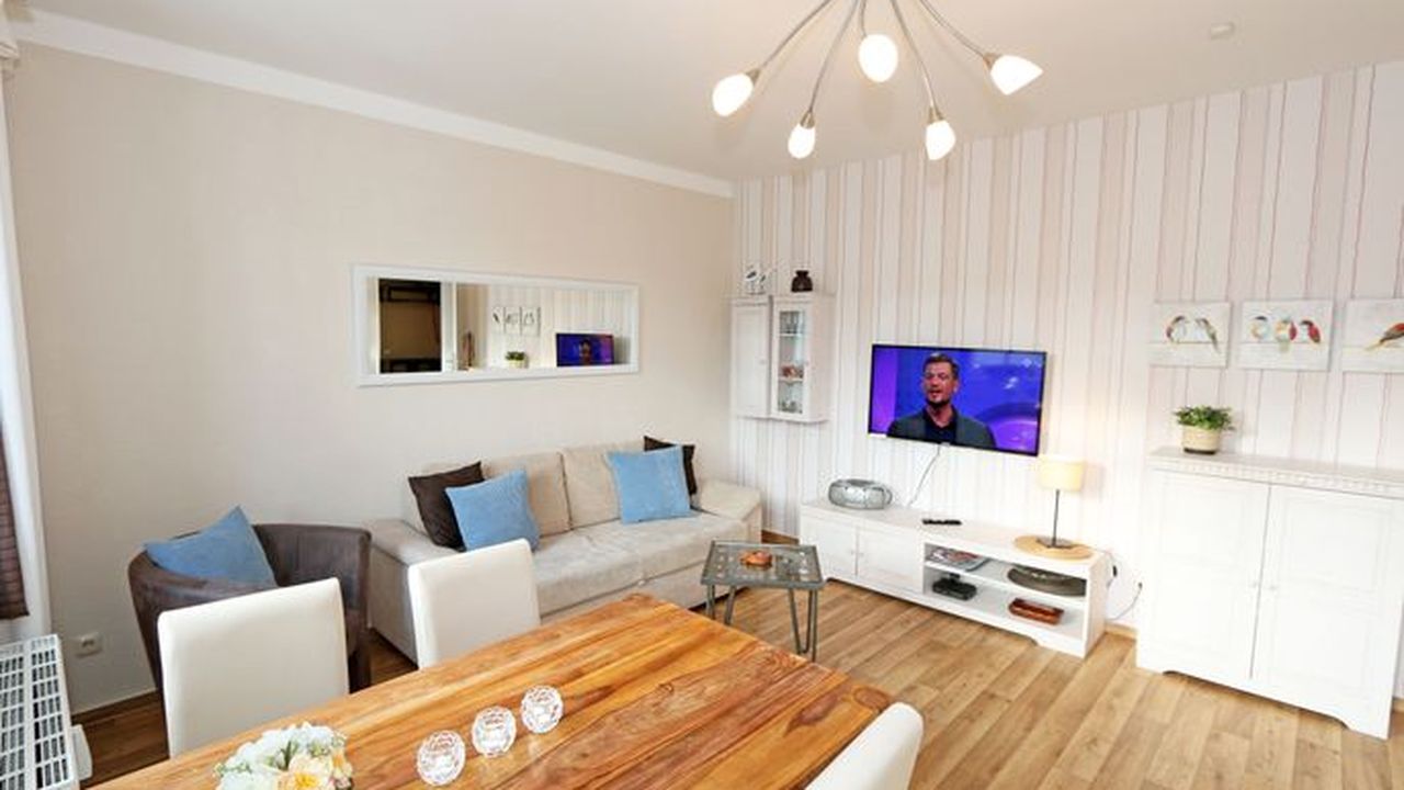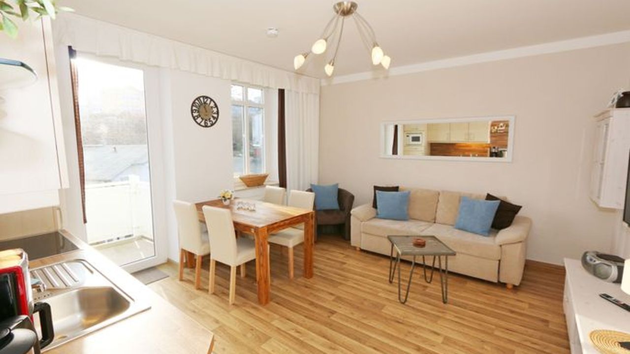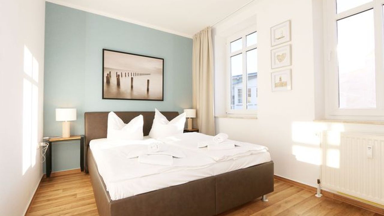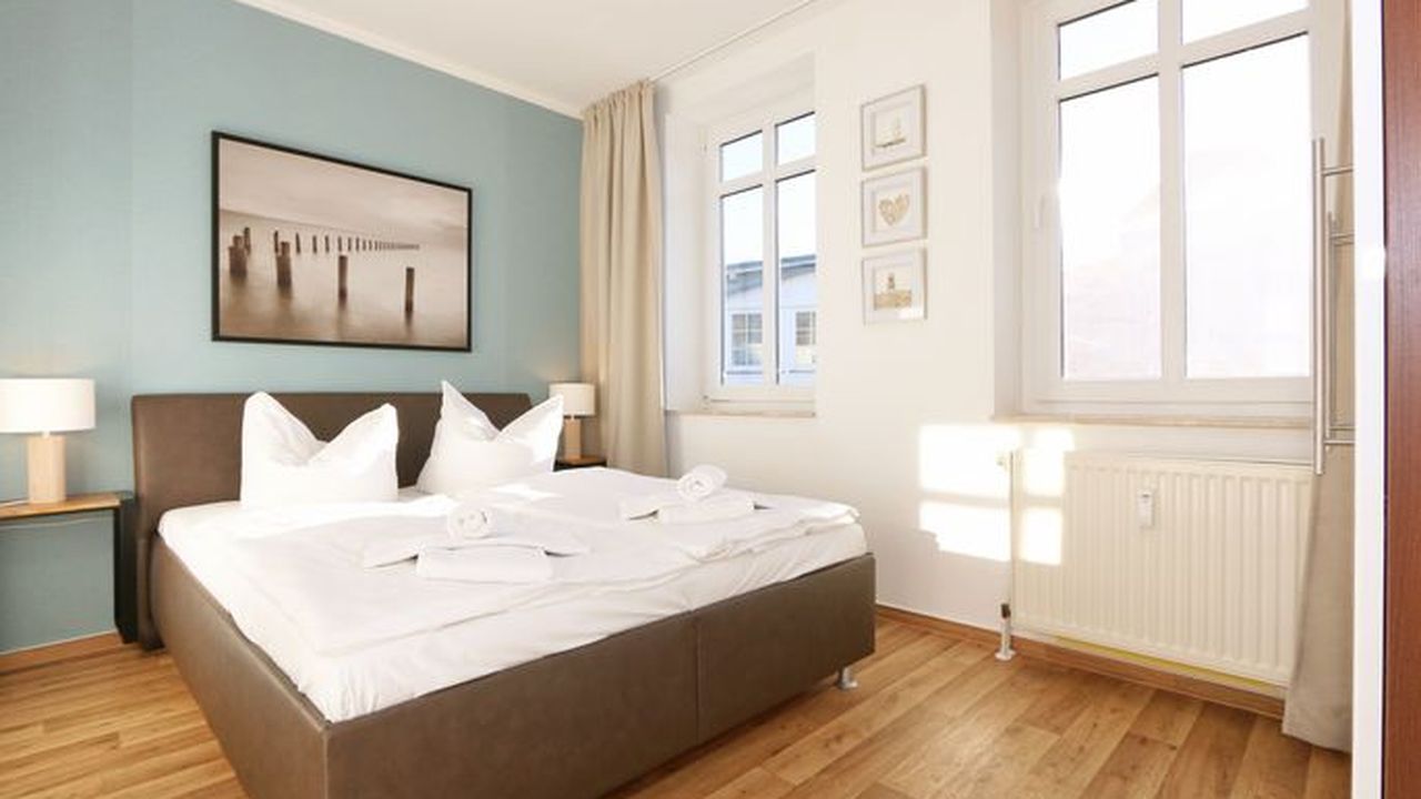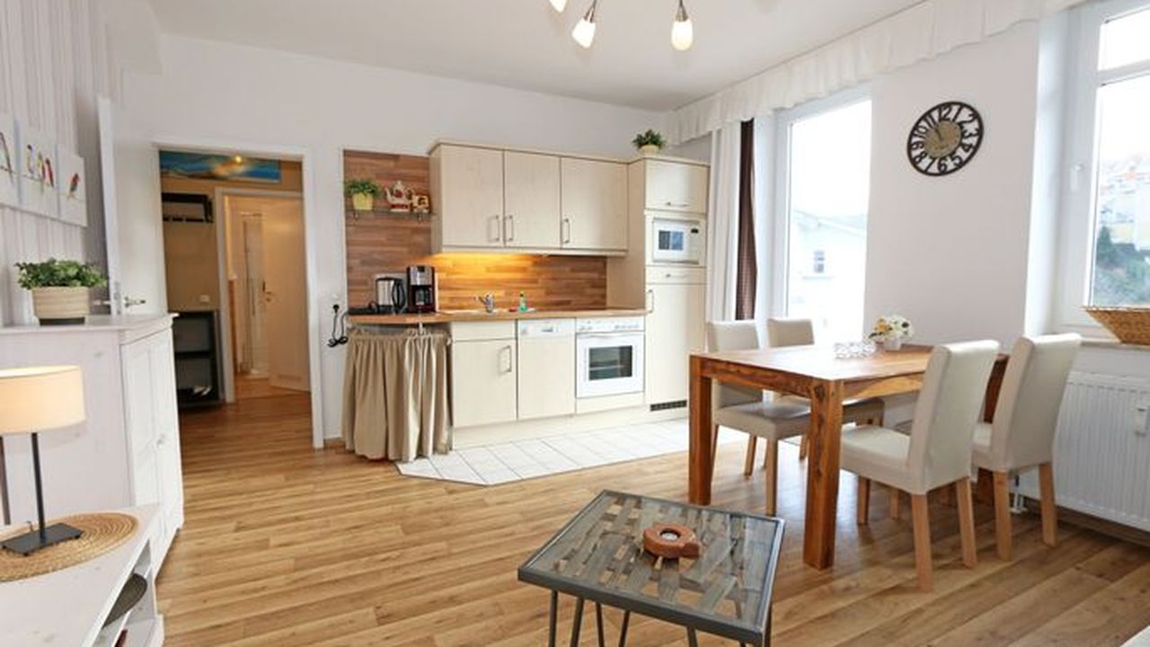 Die Ferienwohnung 09 des Hauses Strandmuschel ist eine komfortable Nichtraucherwohnung, welche sich in der 2. Etage befindet. Die 2-Zimmer Wohnung umfasst etwa 40m² und bietet somit ausreichend Platz für bis zu 4 Personen. Sie setzt sich zusammen aus einem Wohnbereich mit Balkon, einem Schlafzimmer und schließlich dem Badezimmer. Der Wohnbereich ist liebevoll und detailreich eingerichtet. Im dem lichtdurchfluteten Raum finden sie, neben einem Sessel sowie einem Couchtisch, ein bequemes Schlafsofa (1,40m x 2,00m), welches als Schlafmöglichkeit für 2 Personen geeignet ist. Ein Flachbild-TV sowie ein DVD-Player ermöglichen es ihnen, nach einem eindrucksvollen Tag einen gemütlichen Filmeabend mit den Liebsten zu verbringen. Auch ein Radio mit CD-Player und verschiedene Lektüren für die Bücherwürmer unter ihnen sind vorzufinden. Auf einen Internetzugang (WLAN) brauchen Sie nicht verzichten. Dieser ist für Sie inklusive. Die Küchenzeile im gleichen Raum ist mit einem Ceranfeld ausgestattet. Sie enthält, neben einem Backofen und einem Kühlschrank mit Eisfach, einen Geschirrspüler, eine Mikrowelle, einen Wasserkocher, einen Toaster, eine Kaffeemaschine und diverse Kochutensilien. Komplettiert wird der Wohnbereich durch einen Esstisch mit vier Stühlen sowie dem Zugang zum Balkon (Süd/Ost). Dieser umfasst knapp 7 m². Auch hier finden sie einen Tisch mit vier Stühlen sowie einen Sonnenschirm. Der Balkon (Süd/Ost) ist seitlich zum Meer ausgerichtet und tragen die Bäume zum Ende des Jahres keine Blätter mehr, so haben sie zumindest einen wunderbaren Blick auf das Meer. Das Schlafzimmer ist mit einem Doppelbett (1,60m x 2,00m), verstellbare Lattenroste und einem geräumigen Kleiderschrank ausgestattet. Auch ein kleiner Spiegel mit einer Ablage ist vorzufinden. Wie auch der Wohnbereich, ist das Schlafzimmer angenehm hell. Bei Bedarf können sie jedoch einfach die Vorhänge zuziehen und dunkeln den Raum somit komplett ab. Sollten sie feststellen, dass ihre Kleidung im Koffer zerknittert ist, so finden sie im Schlafzimmer sowohl ein kleines Bügelbrett als auch ein Bügeleisen vor. Abgerundet wird der Raum durch zwei Nachttischablagen mit jeweils einer Lampe sowie dekorativen Akzenten im ganzen Raum. Das Badezimmer setzt sich zusammen aus einer Dusche, einem Waschplatz, einem WC, einem beleuchteten Spiegel sowie einer Ablage. Auch ein Fön steht zur Verfügung. Natürlich ist auch an die kleinen Gäste gedacht, so dass Sie sich an verschiedenen Spielzeugen, Gesellschaftsspielen und Kinderbüchern erfreuen werden. Zusätzlich finden sie im Wohnbereich einen Kinderfahrradhelm. Ein kostenloser und mit einer Schranke gesicherter Stellplatz für Ihren PKW befindet sich direkt am Haus. Haustiere sind nicht erlaubt. Die Erstausstattung eines Wäschepaketes (komplette Bettwäsche, 1 Duschhandtuch, 2 kleine Handtücher, 2 Geschirrhandtücher) können Sie bis 14 Tage vor Anreise gegen einen Aufpreis dazu buchen oder durch eigene ergänzen.Sonstiges